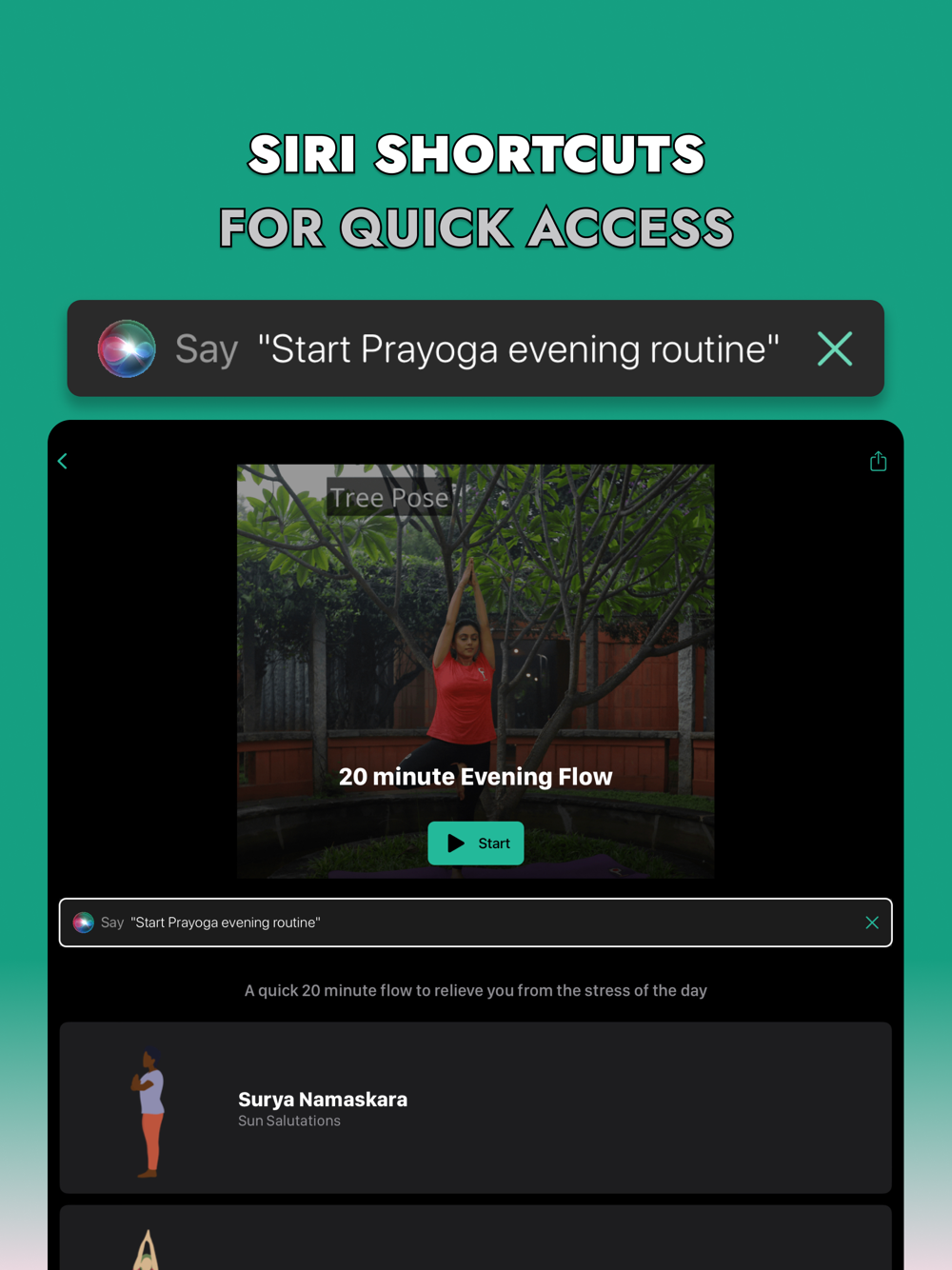 Ask Siri to simply "Start Prayoga Morning routine" or "Resume Prayoga courses" to kick start your day or take it from right where you left off