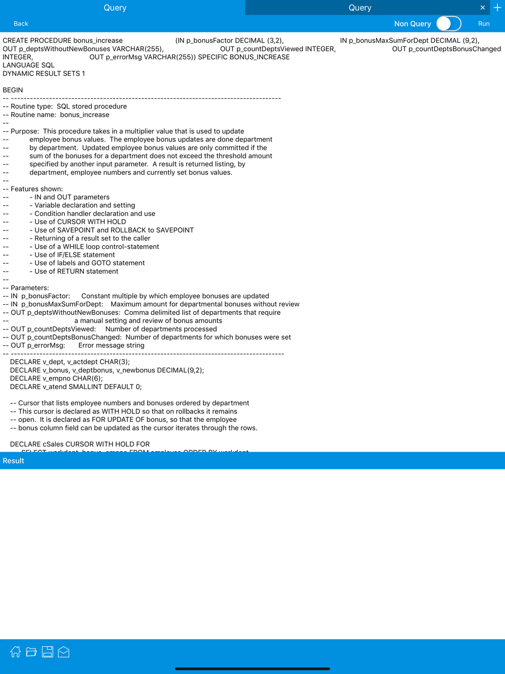 • Fast access to SQL keywords using special SQL keyboard.
