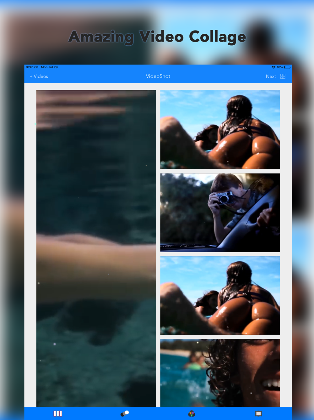 With VideoShot, you can easily create a stunning video collage in a few minutes. You merely need to pick videos to collage, then add adjustable layouts, amazing effects you like.