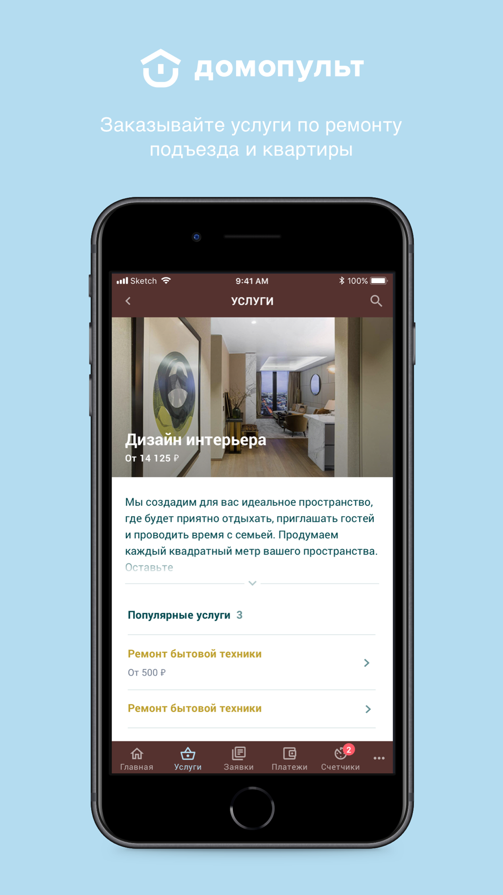 - быстро заказывать услуги, вызывать мастера или связываться с диспетчером;