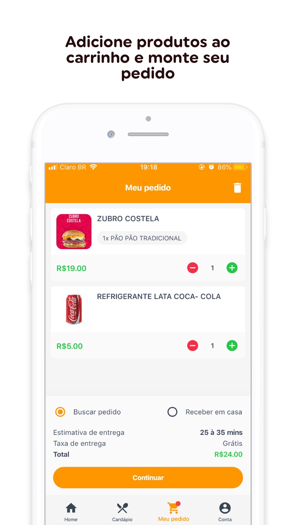 No app, você encontra de forma rápida o cardápio completo e ainda pode utilizar a ferramenta de busca para localizar diretamente os produtos que você deseja.