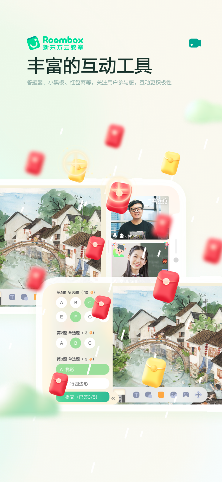 ◈趣味互动流程:趣味工具、趣味表情、趣味奖励,拥有举手、抢答、奖励、授权、上下台和上麦等控制功能,支持实时查看参与者情况,便于实时掌控气氛,调动参与者积极性。
