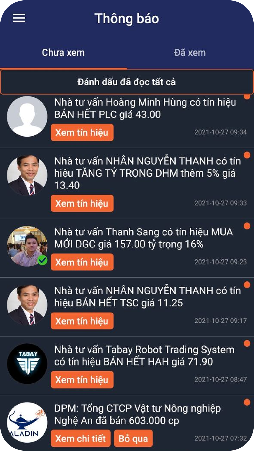 - Tín hiệu mua bán từ chuyên gia: Tín hiệu từ chuyên gia, nhà tư vấn bạn chọn được cá nhân hóa tự động gửi đến bạn thông qua web và app