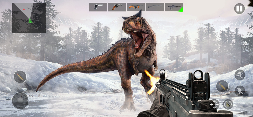 In this survival simulator, embark on the primeval hunting expedition of a lifetime - there are 30+ levels with increasing difficulty and load up on firepower with destructive weapons like the pistol, revolver, machine gun, assault rifle, and shotgun with increasing power. You’ll need a great arsenal and a proficient shooter strategy to kill these ruthless bloodthirsty dinosaurs;