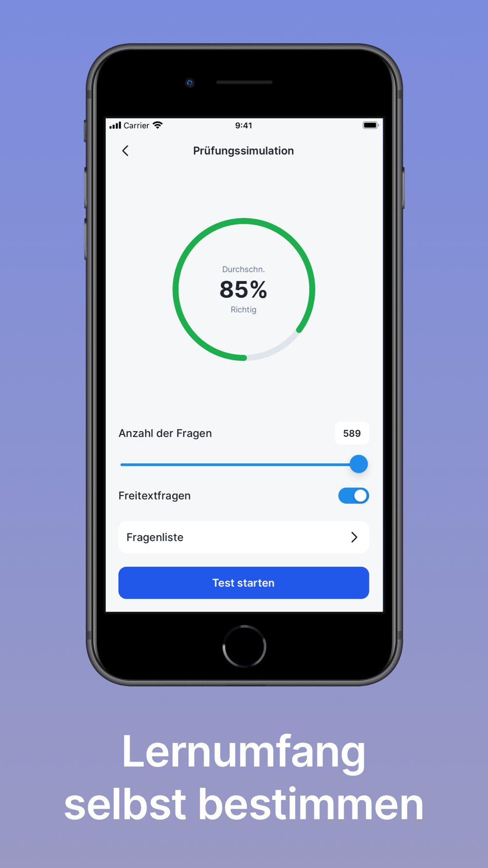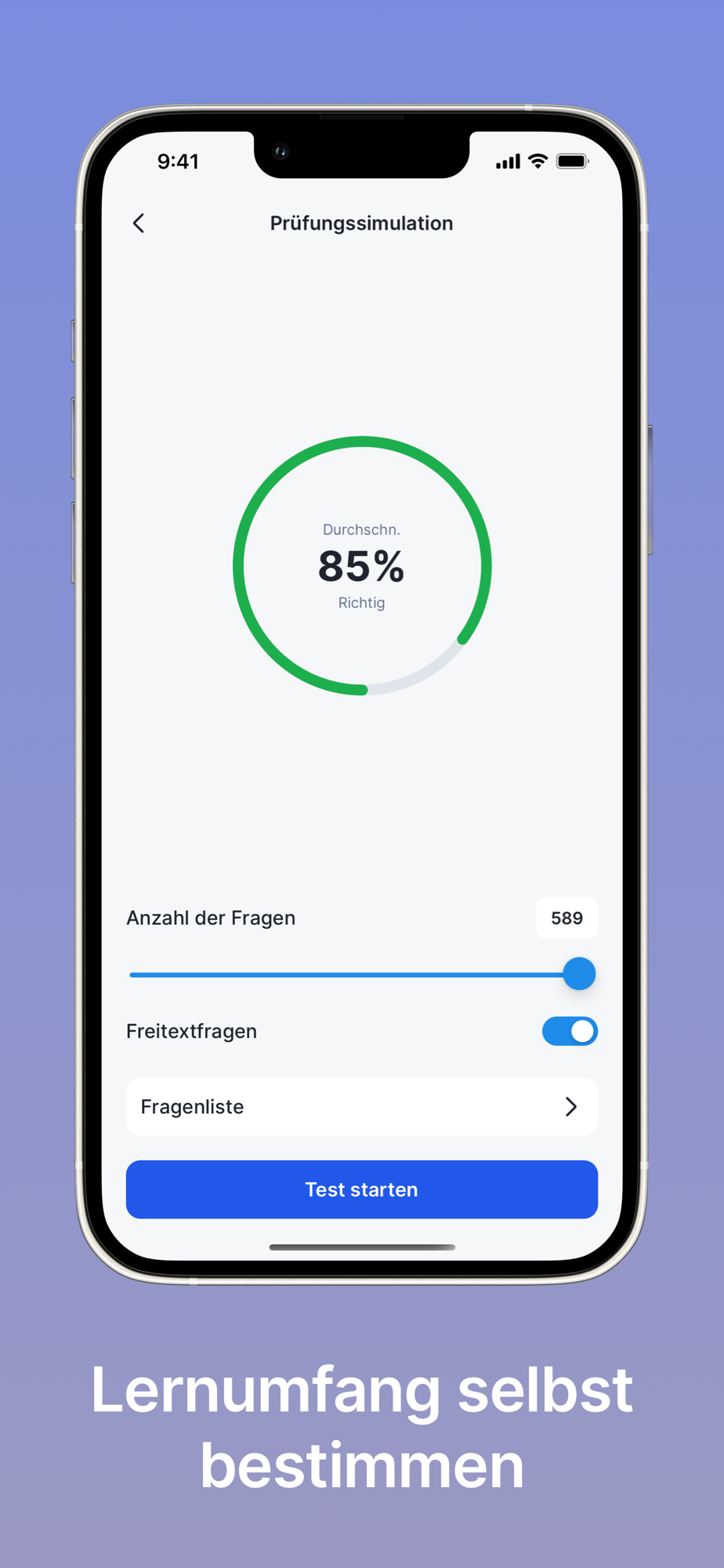 - Anzahl der Fragen sind frei wählbar - Nur wenig Zeit? Der Workload kann selbst ausgewählt werden, je nachdem wie viel Zeit vorhanden ist.