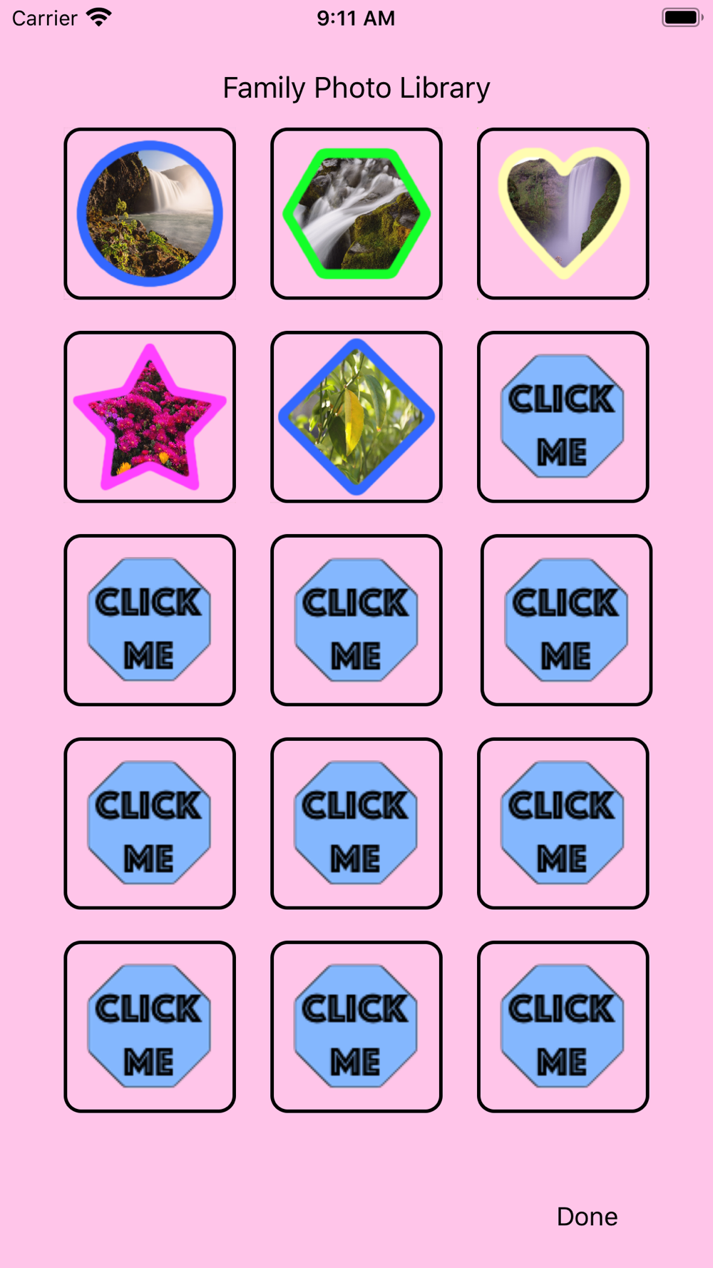 Make the pictures go poof when you match them up. Use the built-in pictures of common household items or use you own pictures. Or match numbers or letters.