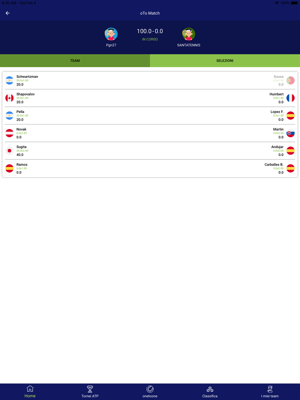 Federer, Nadal, Djokovic, etc….potranno far parte del vostro oTo team e le loro vittorie contribuire ai successi in questo avvincente fantagioco! Oppure potrete inserire nella vostra squadra tennisti emergenti e tifare per il loro avanzamento nei tornei ATP.