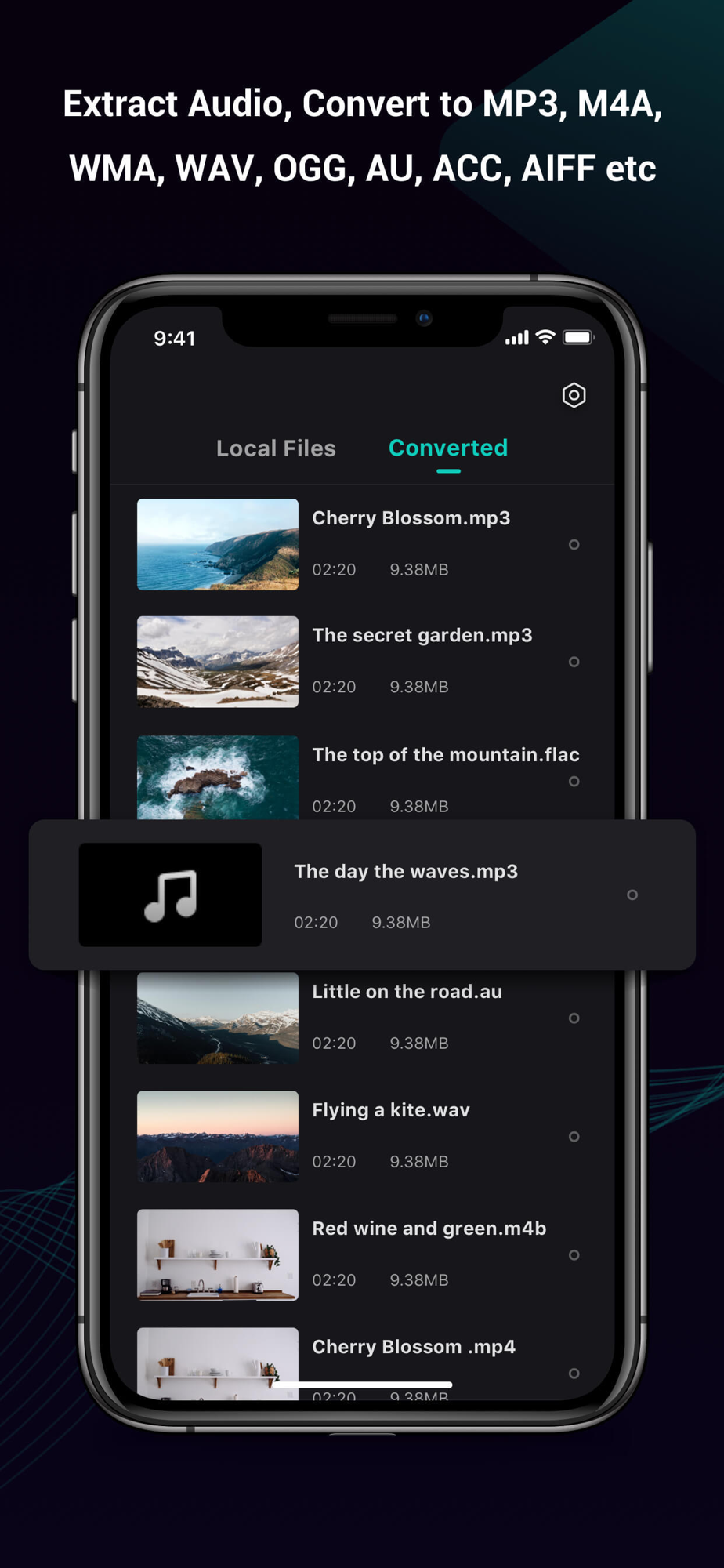 - Extract audio from video files and save it as MP3, WAV, FLAC, AAC, AIFF, M4A, AU, WavPack, AMR, MP2 and more