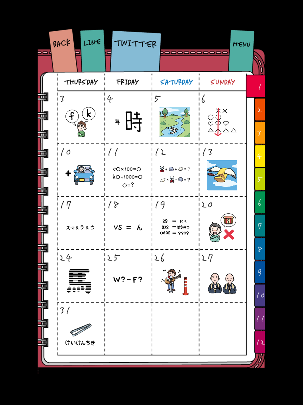 1ヶ月全て解き終えたら、次の月のふせんをタップして並べ替え問題にチャレンジしよう!