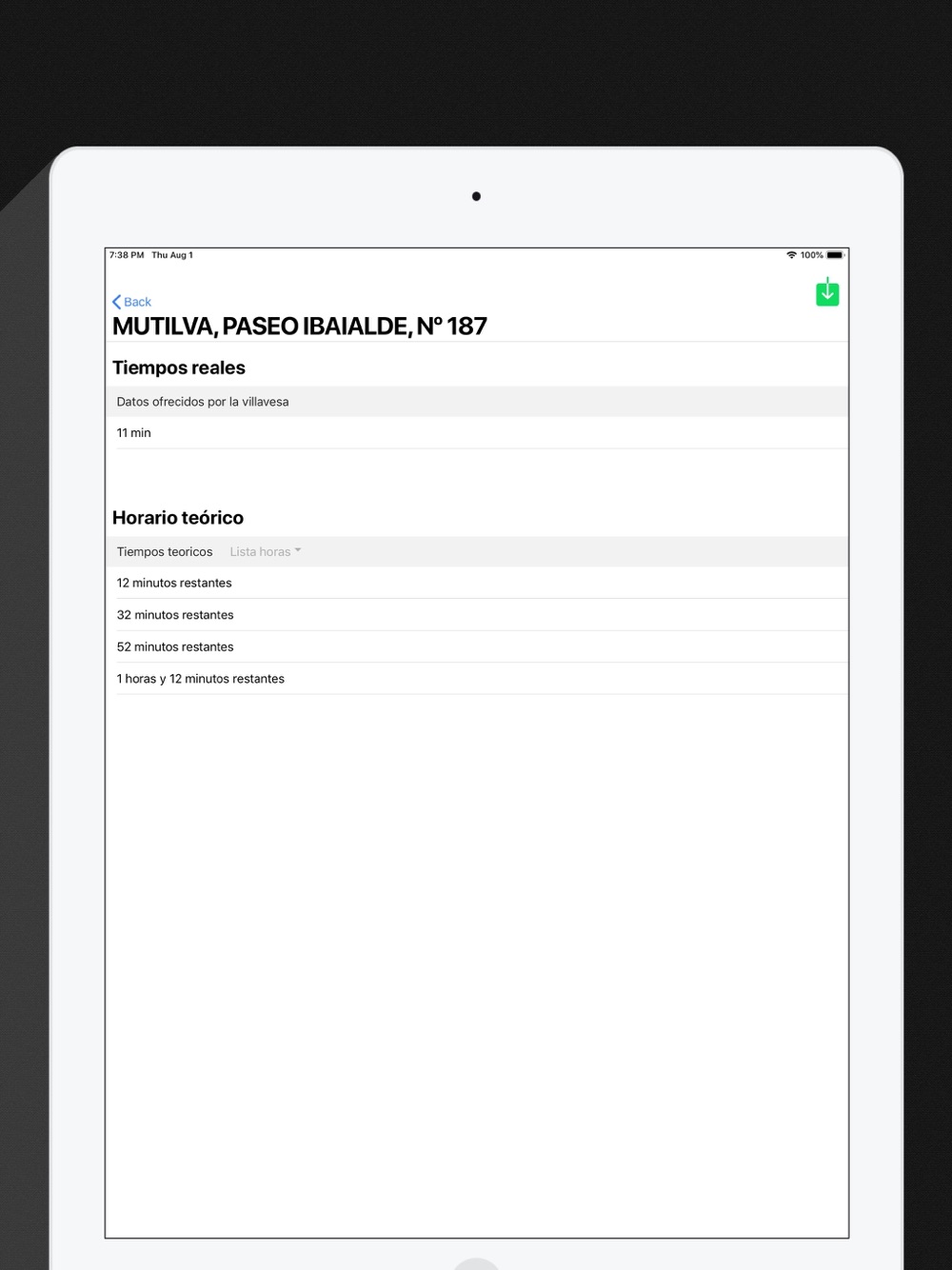 - Tiempos de llegada: informaciones en tiempo real sobre las estimaciones de llegada de los autobuses a las paradas