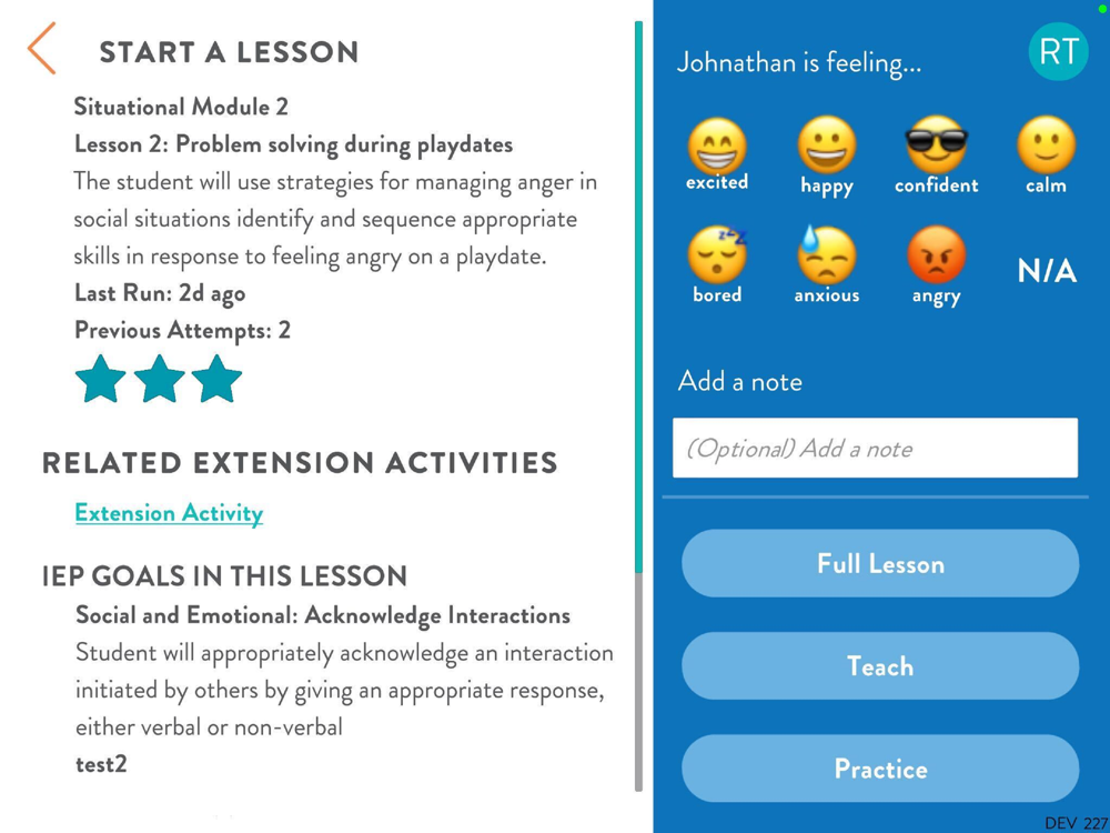Added 2 New Social Skills Modules and 9 new lessons and 5 new calm down tools.Calm Down Anywhere Module which includes introductory lessons and an associated tool for each: Balloon Breathing, Triangle Breathing, Box Breathing, Hand Breathing, and 345 Breathing.Safety Drills Module which includes lessons on Fire Drills, Lockdown Drills, Evacuation Drills, and Relocation Drills.