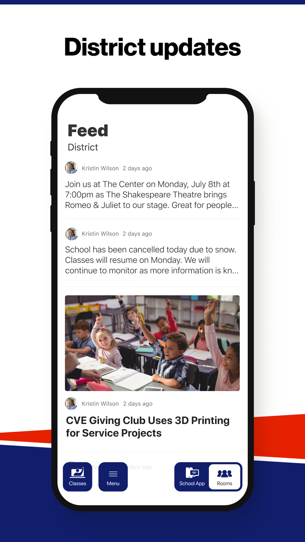 In the Live Feed is where you’ll find updates from the administration about what’s going on in the district right now. Whether that’s celebrating a student’s success, or reminding you about an upcoming deadline.