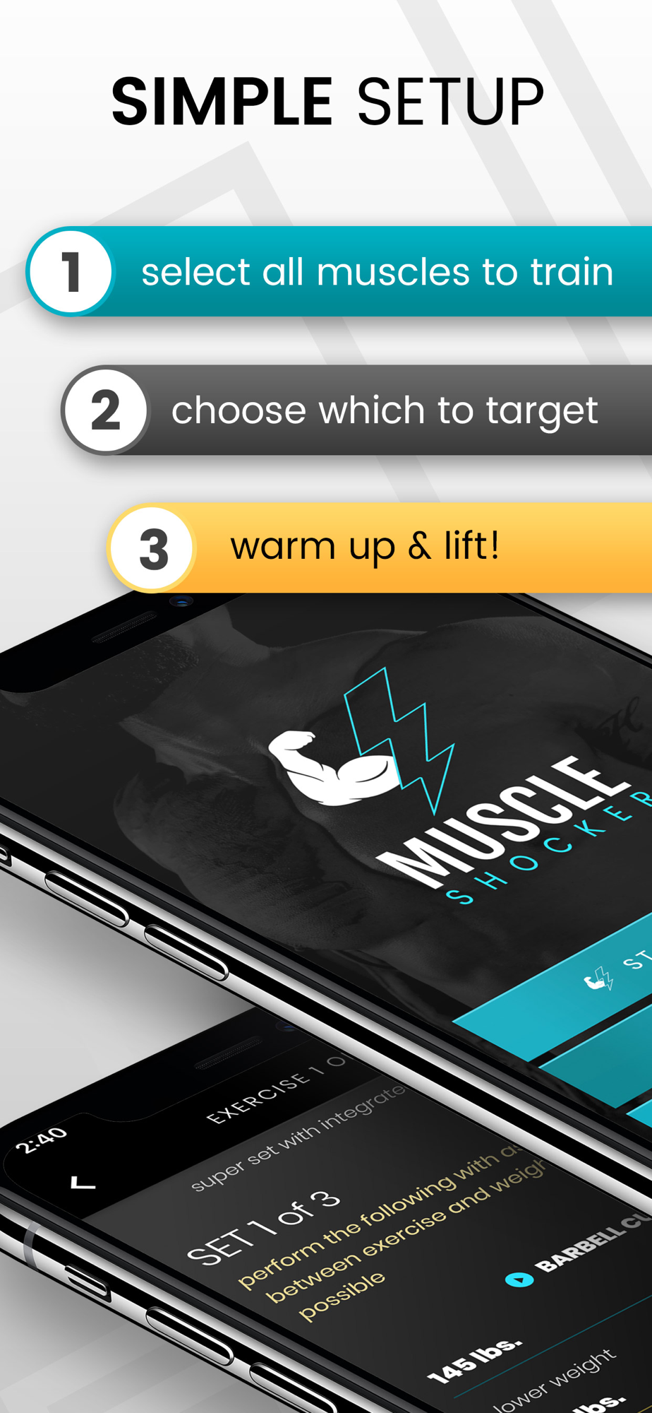 The all new Muscle Shocker app helps users quickly generate intense muscle building workouts.