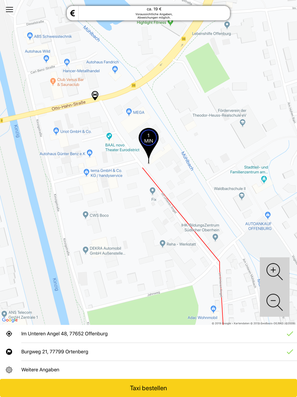 Sie erhalten eine Bestellbestätigung und können jederzeit den genauen Status Ihrer Bestellung einsehen (wie z.B. die Anfahrt Ihres Taxis).