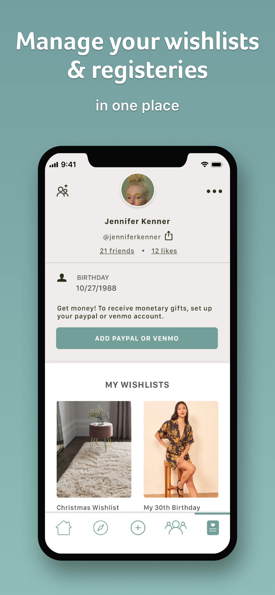 Invite your friends and your family to follow your wishlist, so you can get gifts that you actually want