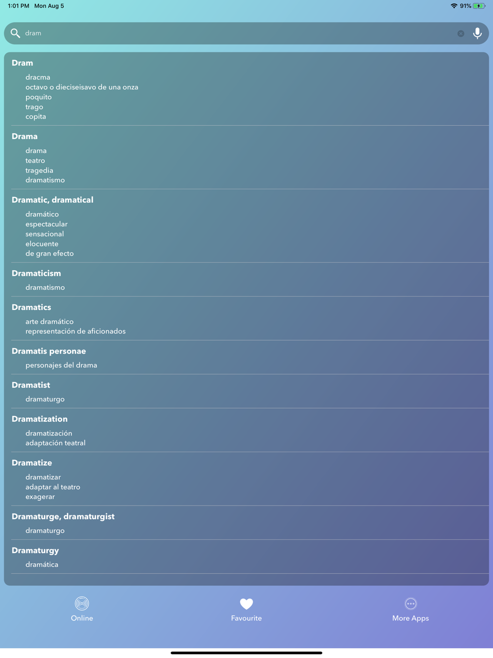 • Has facility to input in Spanish and search Spanish Words while typing.