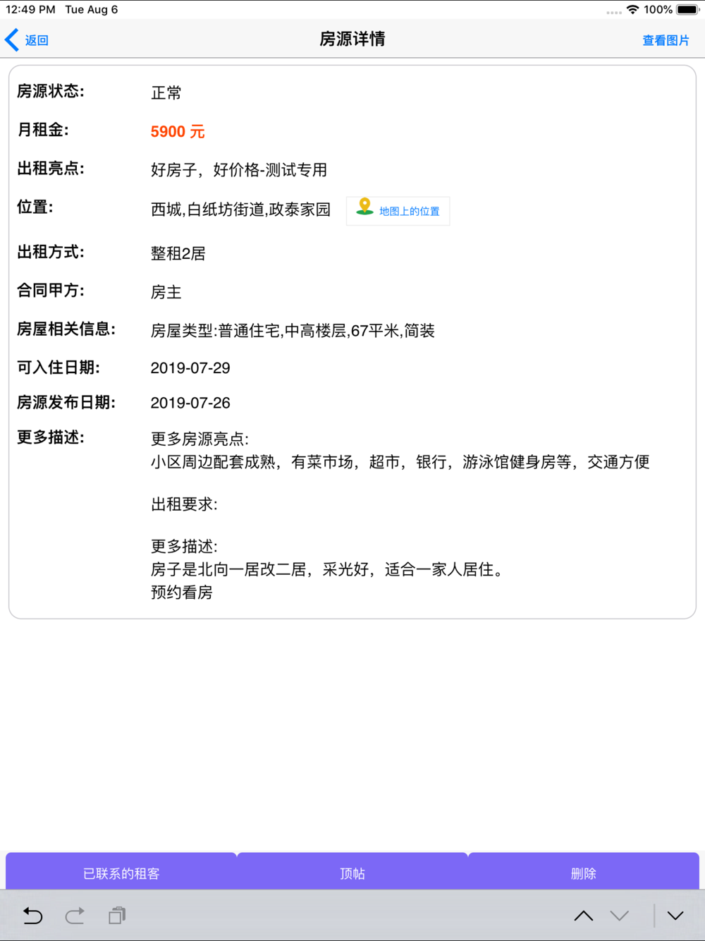 本app是房东版本,主要用于房东发布,管理,维护房源信息;用于和租客联系租房事宜;以及举报不合规的租客等。