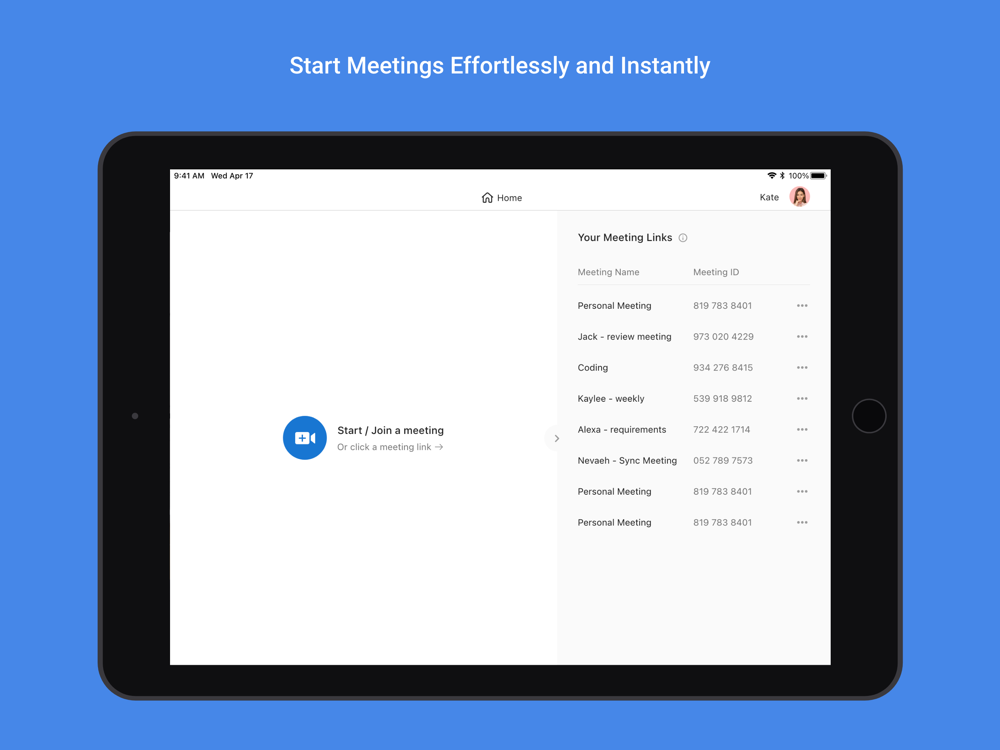 - Easy to use and you are just a couple of clicks away to start your meeting and much more!