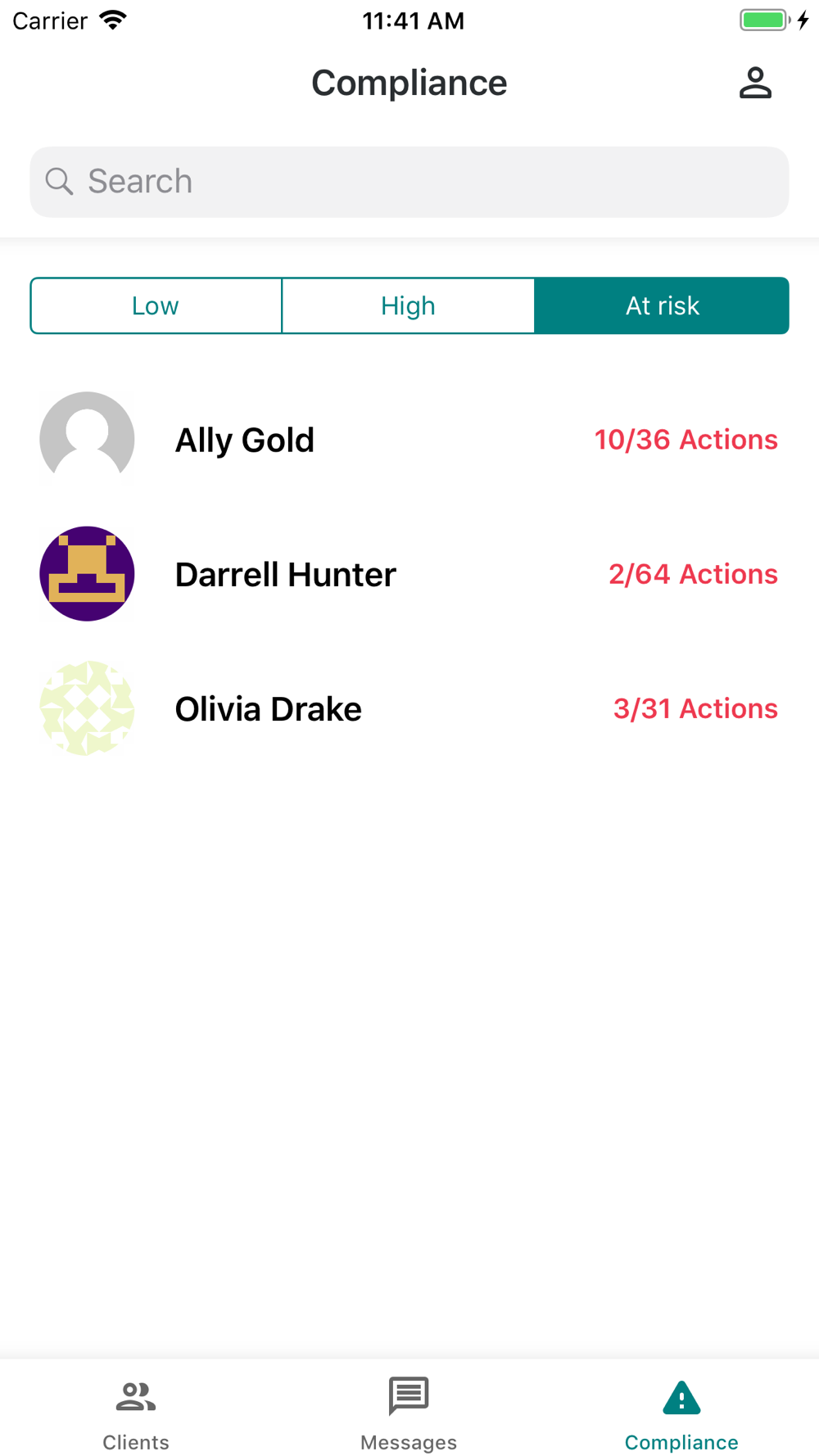 The Coach Catalyst application focuses on Coaches' features of the Coach Catalyst system. In the first version, the Coach can stay in constant contact with their Clients through the improved chat - but with the old, comfortable filtering options. Coaches can also track their Clients' compliance through the Compliance tab.