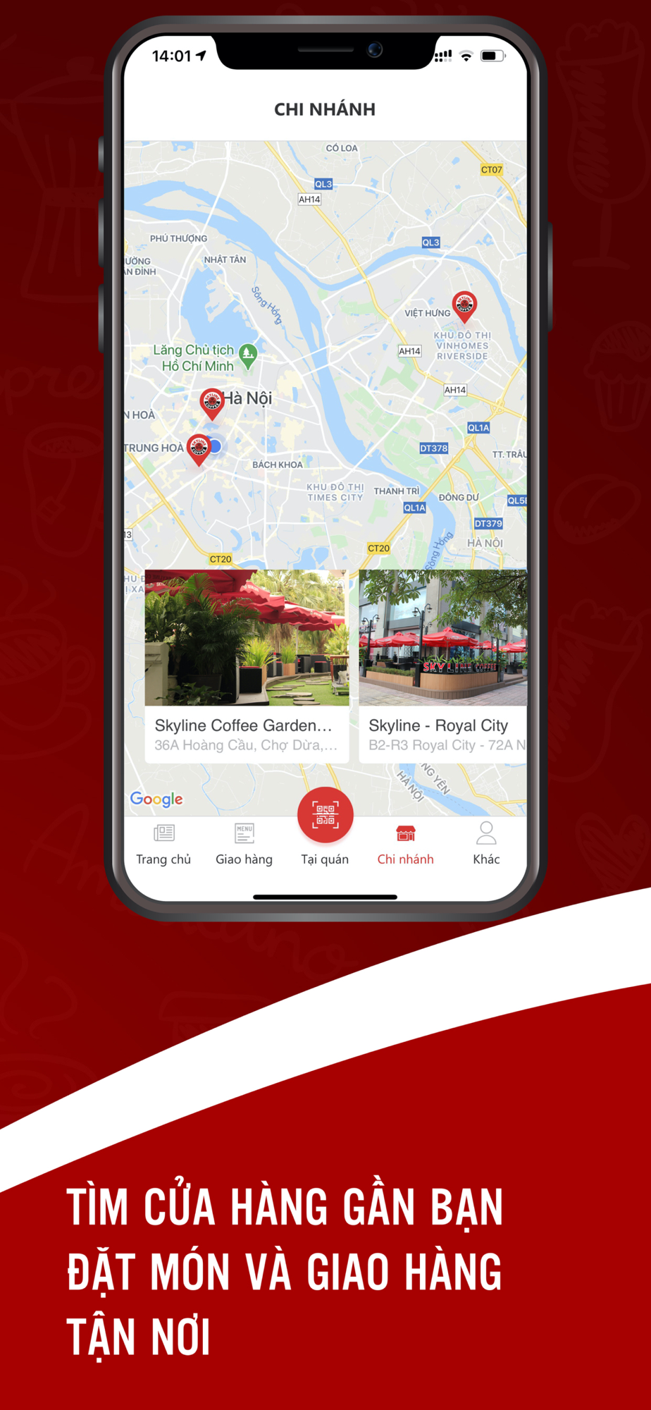 - Với ứng dụng Skyline Coffee chúng tôi mong muốn mang lại một trải nghiệm mới mẻ, xuyên suốt cho quý khách với tính năng O2O(Trải nghiệm mua hàng Online to Offline). Quý khách có thể ngồi tại nhà, tại cơ quan vẫn có thể thưởng thức được những ly cà phê thơm ngon bằng trải nghiệm đặt giao hàng online(Delivery). Cũng như ngồi tại quán có thể trải nghiệm đặt đồ mới mẻ với tính năng quét QR Code gọi món tại chỗ mà không cần gọi nhân viên phục vụ.