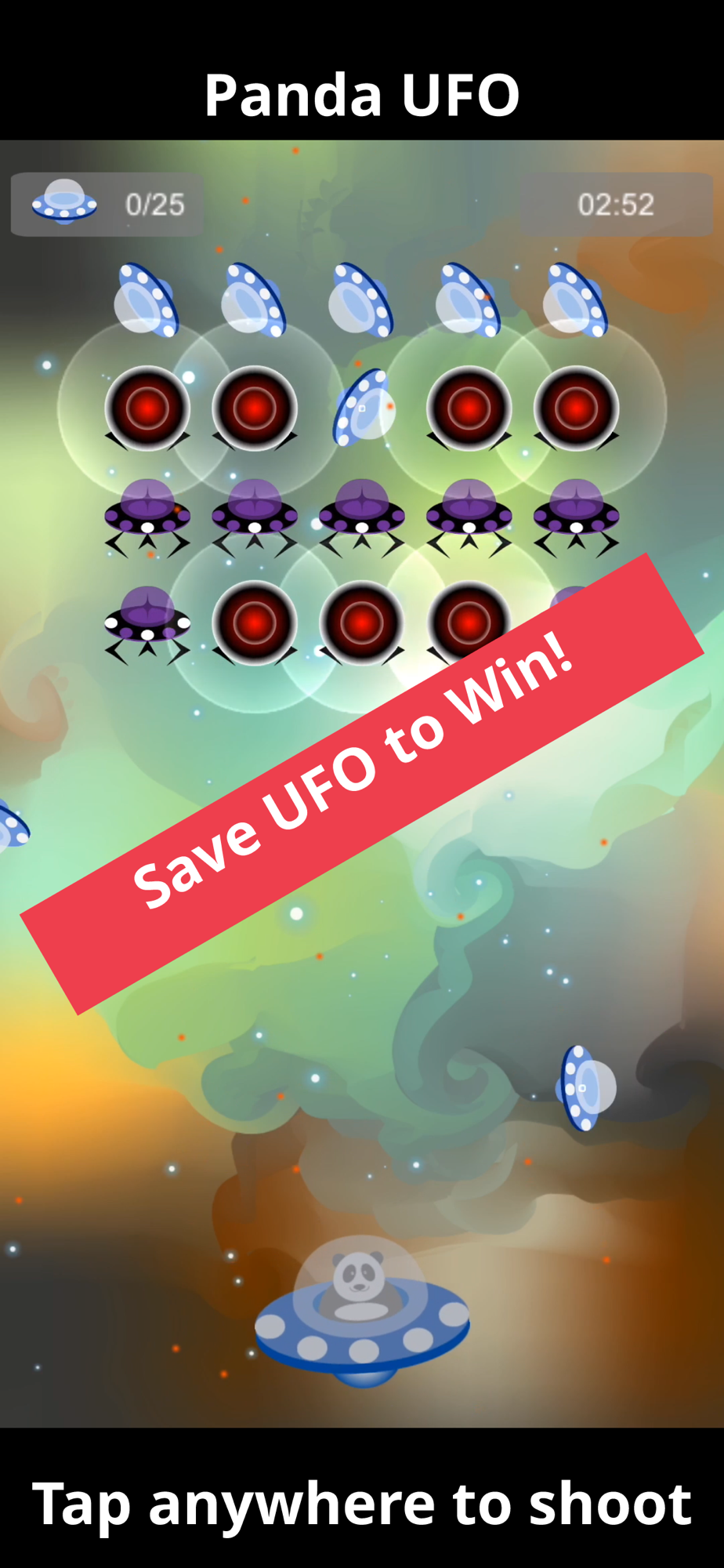 Panda loves flying the UFO and explore the planets in the universe. Blast and shoot the Alien Creatures to release the trapped UFO.