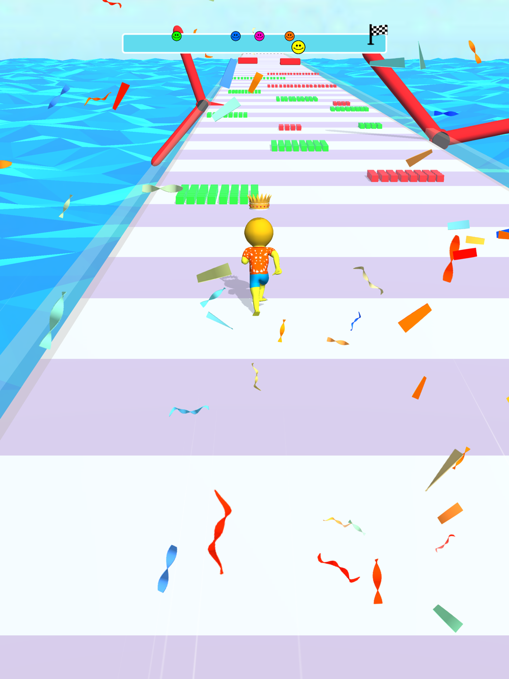 Run on to Green to run faster and Red to go slow. Huddles will put you down and make you run again from the previous milestone. Try to crush much green to win the race, sometimes too fast will be too dangerous.