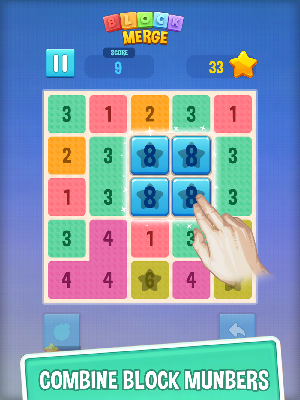 Merge the number block of the same color and they will increase by 1. Your target is 13 but you can definitely go further than that.