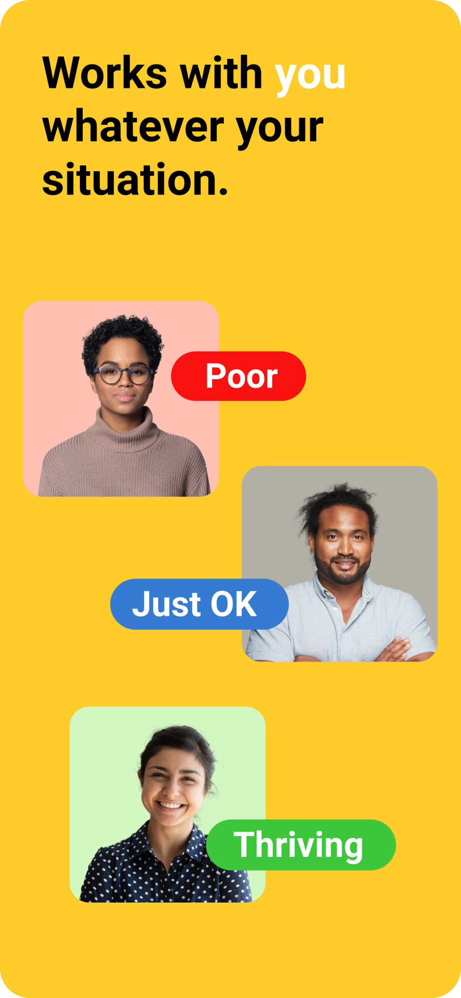 A real coach wouldn't treat everyone the same, so why should apps do that? We all have our own unique history, mental baggage, personality and so on. EverYellow considers the many ways you are uniquely you and gives you just what you need. This is why so many users of EverYellow see significant progress in as little as one to two weeks.