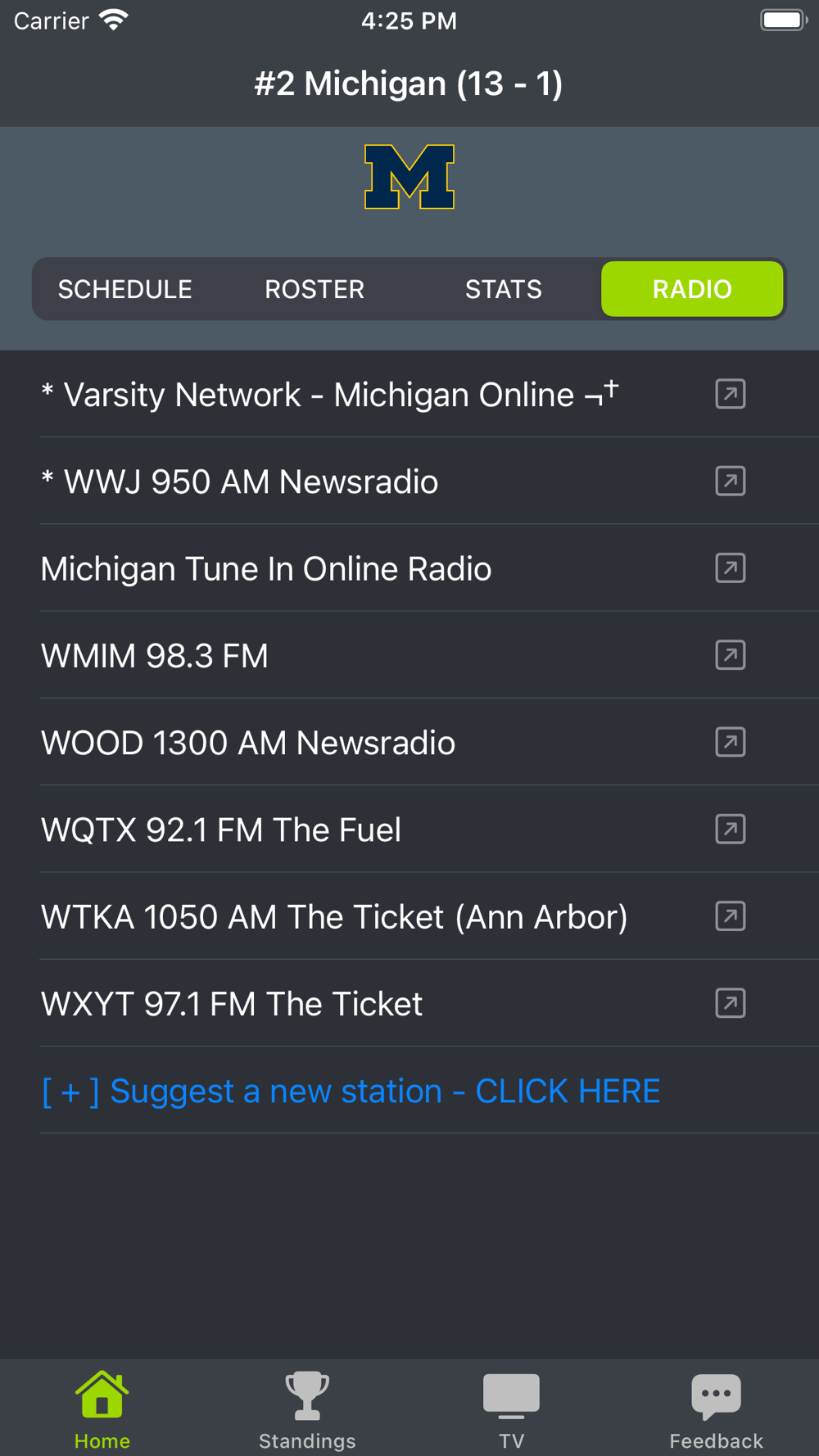 Michigan Football Schedules provides scores, links to live radio, schedules, tv channels, player profiles, and game matchups in one location.