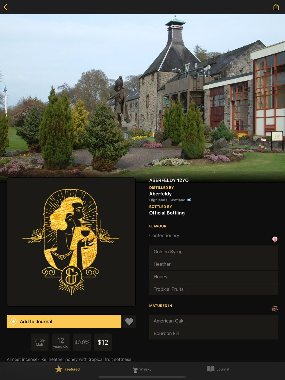 Save whiskies you want to try in your favourites list, log whiskies into your journal (tagged with emoji) and add keep track of your own personal tasting notes.
