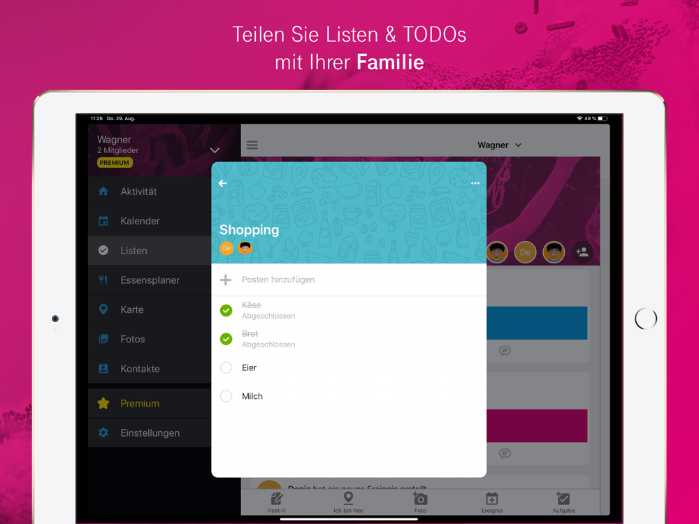 To-Do-Listen: Teilen Sie Listen und weisen Sie Aufgaben an unterschiedliche Familienmitglieder zu. Sie werden benachrichtigt sobald Aufgaben erledigt oder aktualisiert werden.