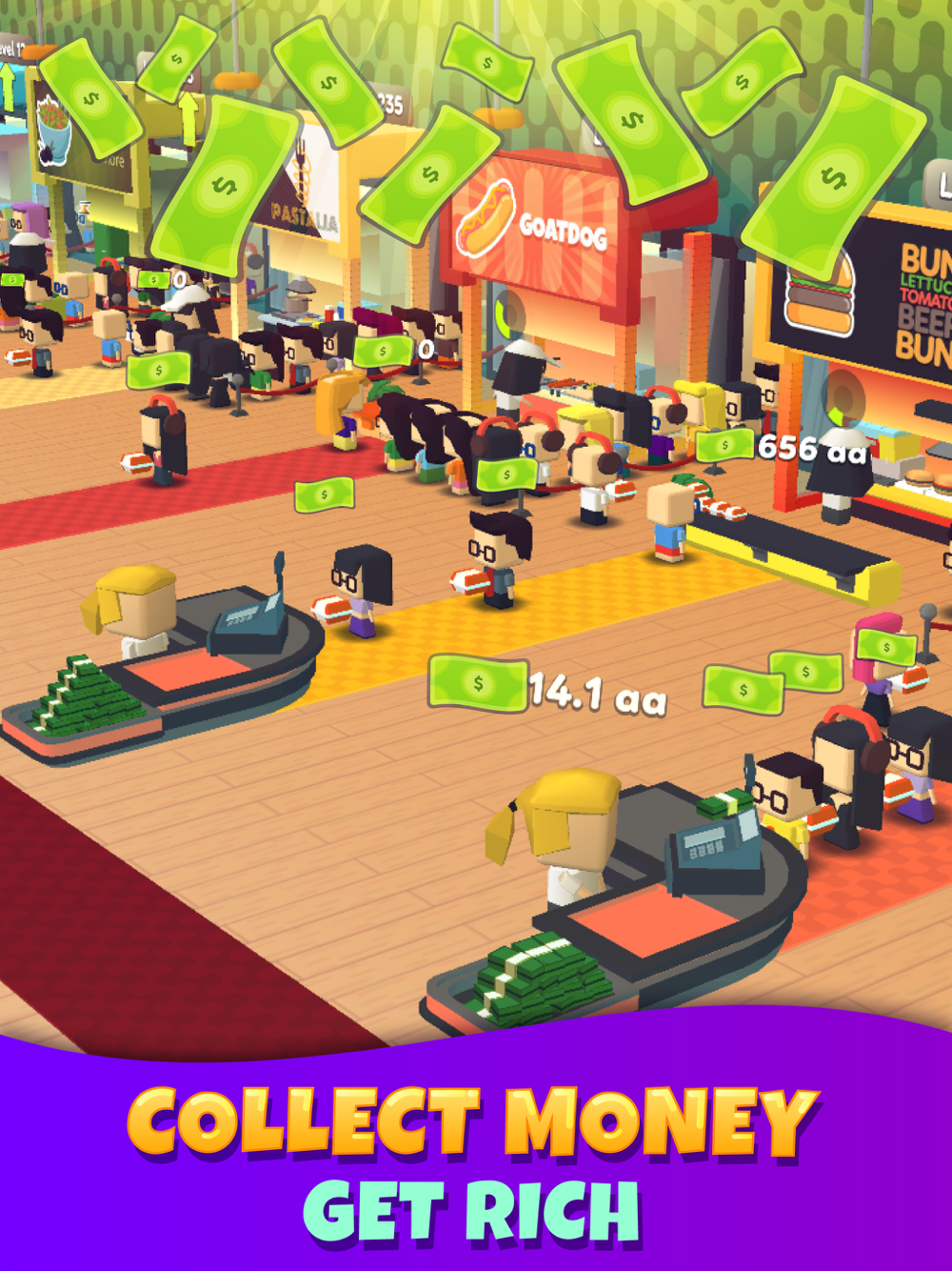 When you complete your units, now it’s time to move another magnificent mall...Be curious for the new achievement and and collect them. Be brave for unit upgradings! Always be alert for food cards , these cards can make you richer and richer.. Develop different strategies for every food unit and court, how much you will earn and howearly you will become rich, is up to you and your strategies...!