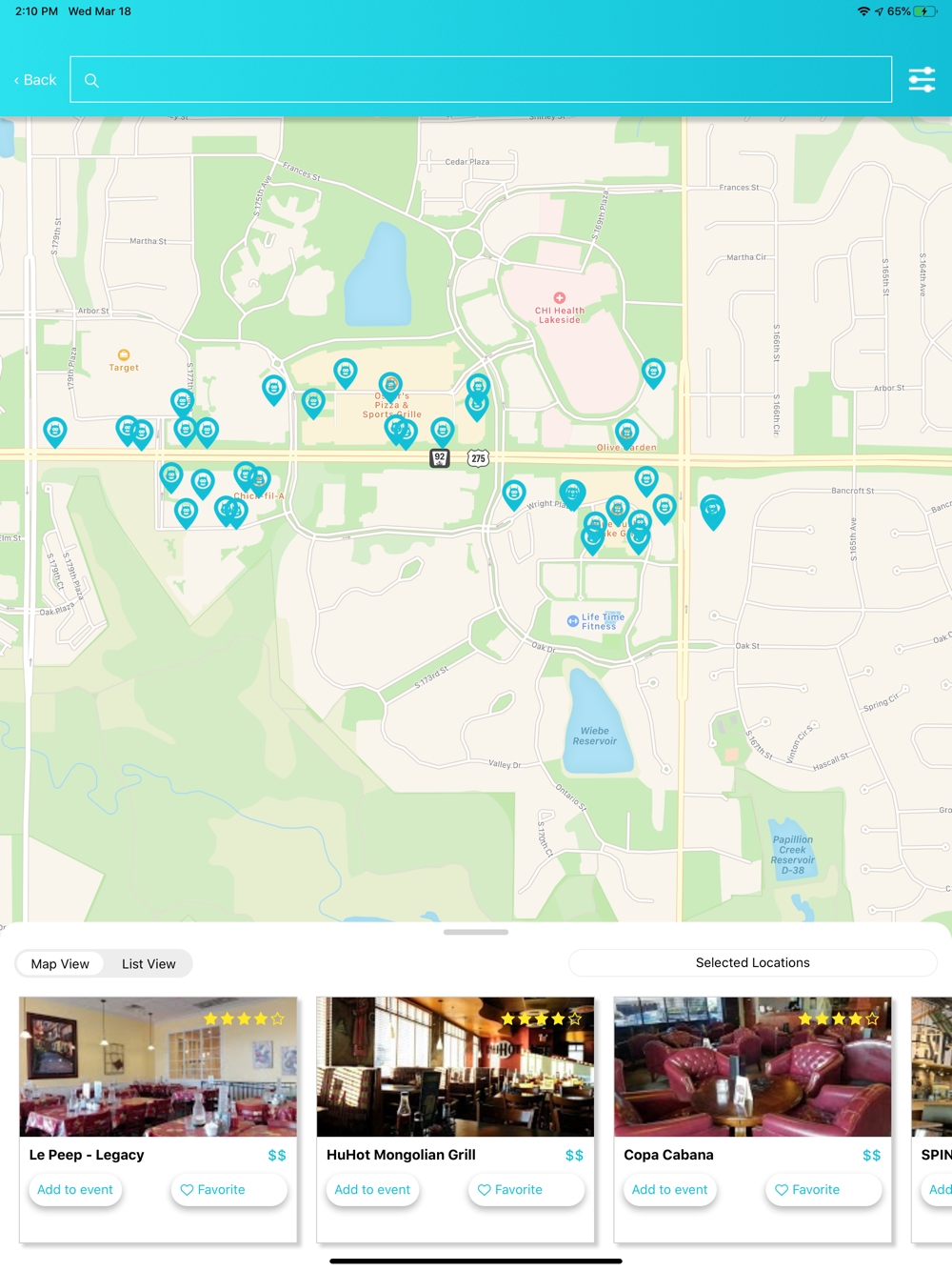 * Find places by Price, Distance, Food Type and more