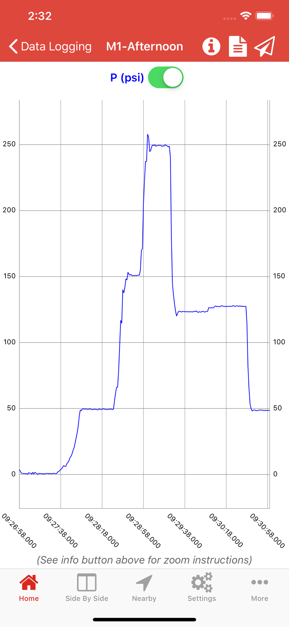 Log pressure data to the sensor in a new data logging session, and walk away. Run as many simultaneous sessions as you have sensors! Come back later, download the logged data, and view the results in an interactive graph or chart form. Optionally, email the data to colleagues.