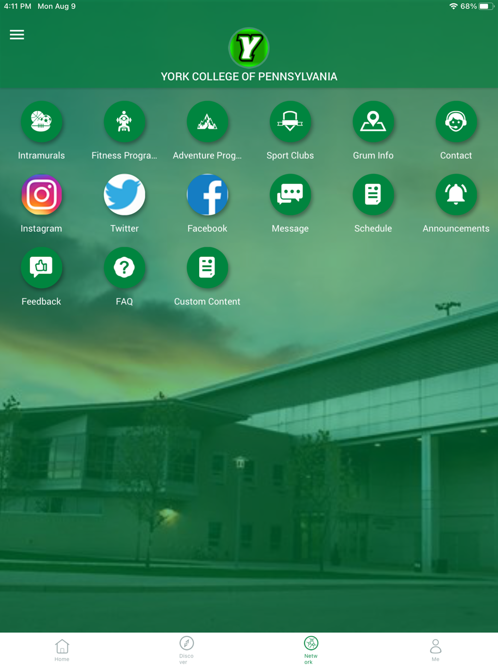 The official app for the York College of Pennsylvania Campus Recreation program. Stay up to date with YCP Campus Recreation programs by downloading our mobile app! You will have instant access to IM Sports and Group Fitness schedules, check into games/classes with unique QR codes, and much more.