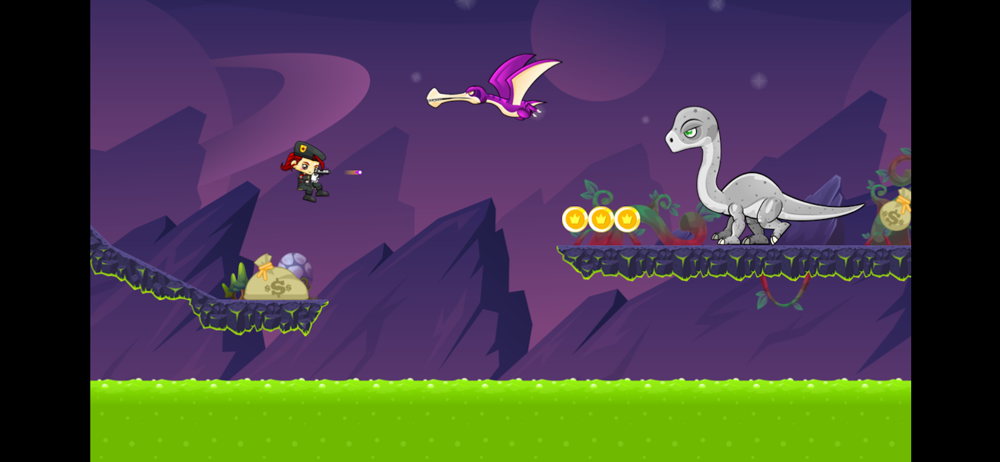 "Jurassic Attack" is a 2D platformer game, shooting dinosaur, unlock characters and fight the boss.