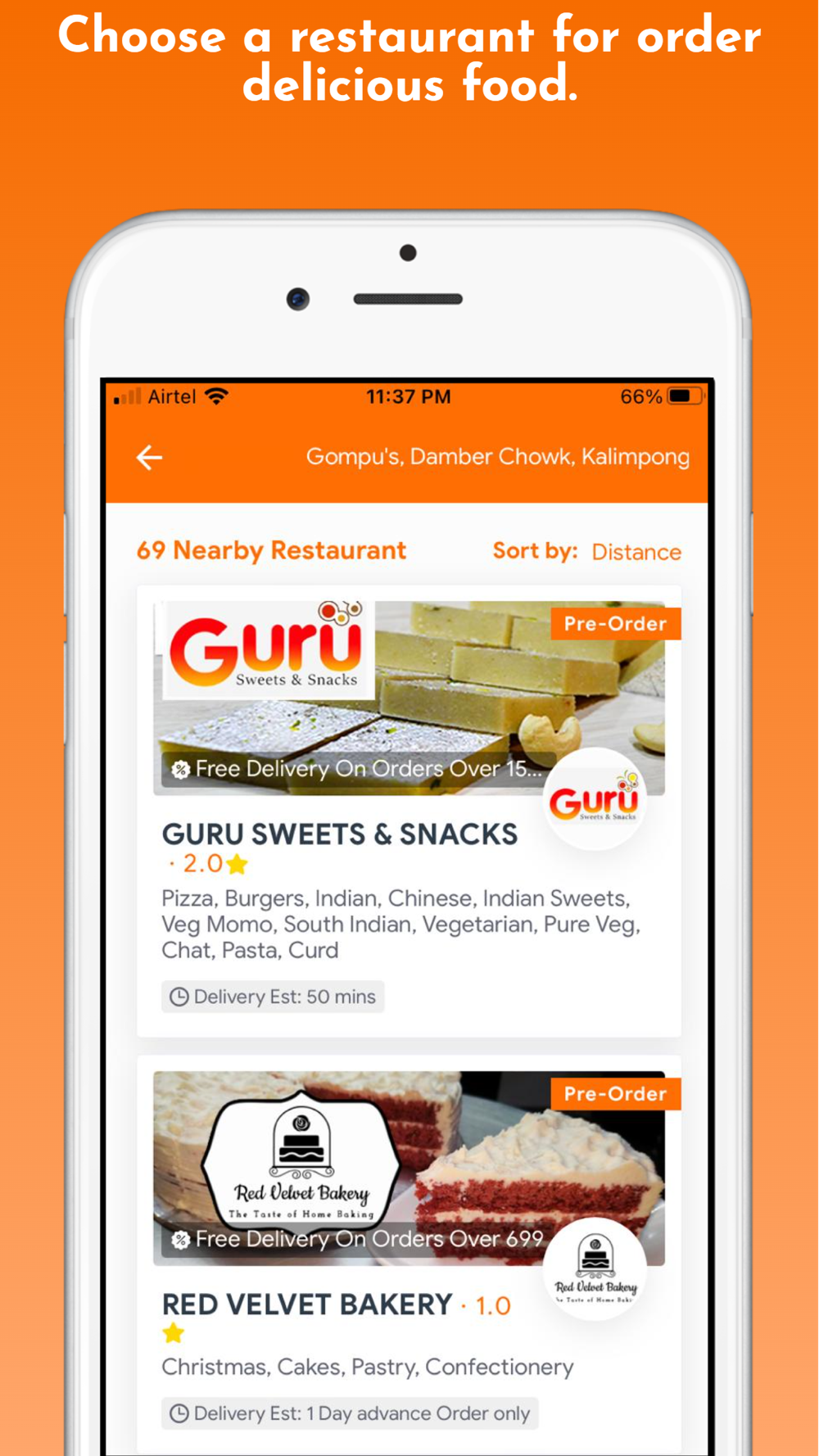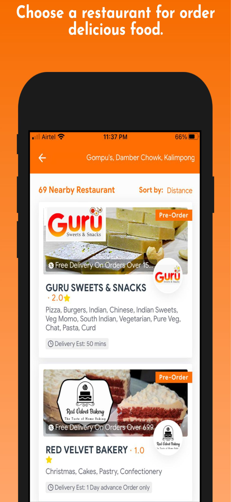 2. You can then simply select your restaurant and view their menu and details. Add the food to your cart and you can simply select your address from the integrated google map and check out.
