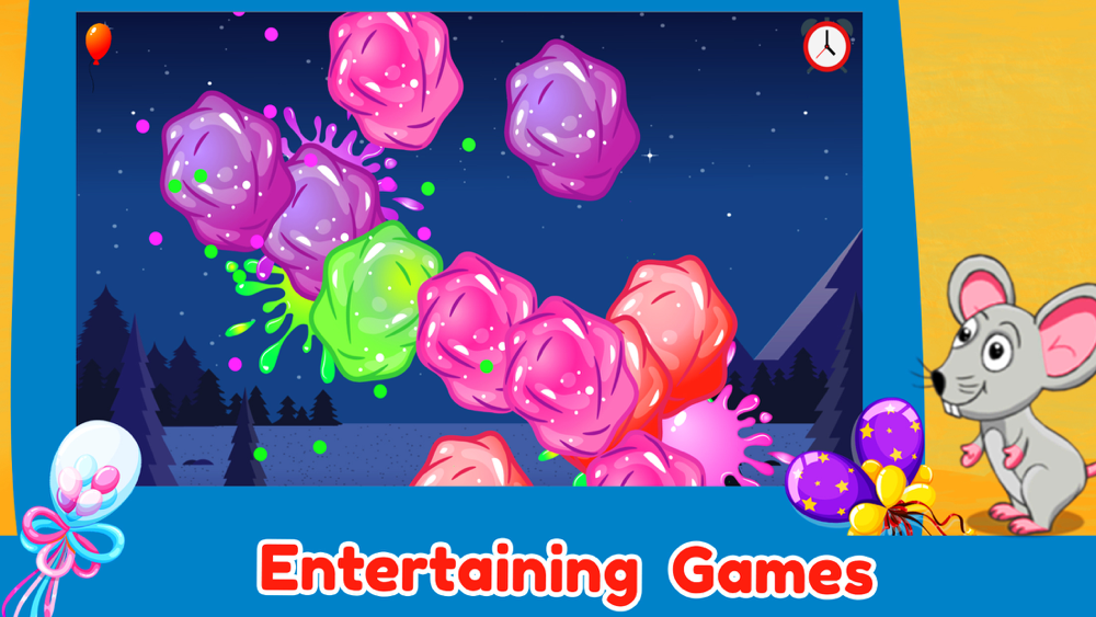 Along with story children are being entertained with two games. In the first game, children need to pop the balloons into the given time. Background sound and voice of popping balloons make this game more interactive. In the second puzzle, children find the objects within the given time. Unlock the stickers after completing a level or achieving high scores. Lion and the Mouse along with story and puzzles is a source of entertainment for kids.
