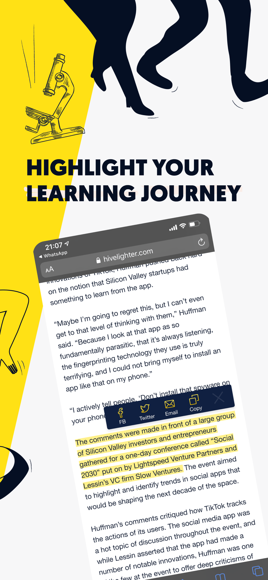 hivelighter is a free highlighter app for your smartphone. It helps you keep track of what’s important in the content you’re reading.