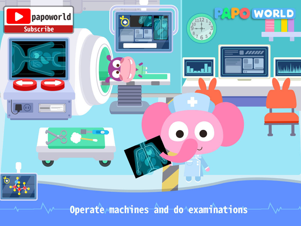 Do you want to be a doctor? Start your internship at the Papo Town Hospital! Work as a doctor to treat the town residents! Do you know how to operate an x-ray machine? How about doing a dental check for Colin the Cat, or work as in the emergency center to cure the patients? Explore in the hospital and become an excellent doctor!