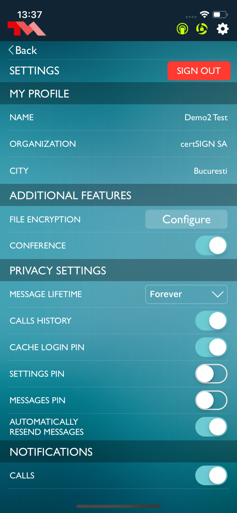 With Trust4Mobile Enterprise, your privacy always comes first by giving you full control over its functionalities and security features. You are able to decide whether the application saves the call history or not, if it stores (in encrypted format) the messages and documents you receive or the lifetime for a message stored locally. Additionally, you can create and manage your own encrypted conference sessions.