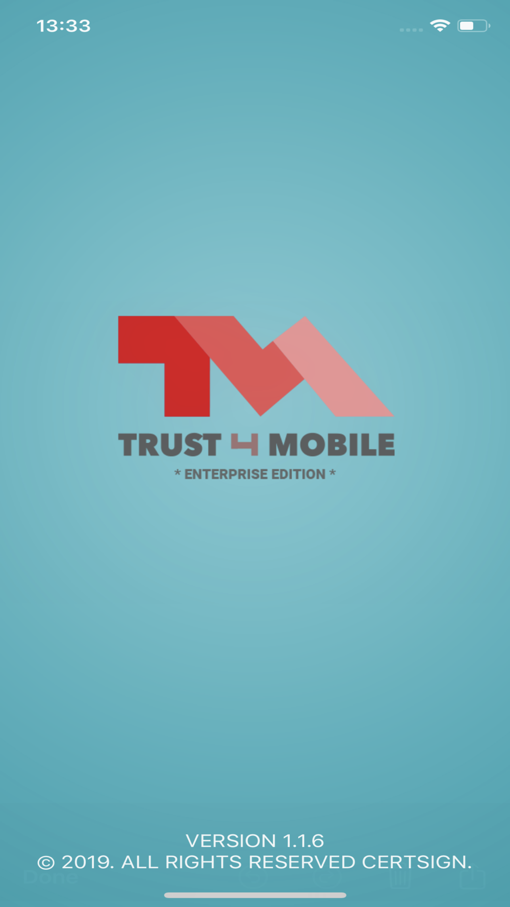 Trust4Mobile Enterprise uses cryptographic keys and digital certificates in a PKCS#12 container, stored in the memory of the device. The protection of the keys and the digital certificate is assured by using a chosen PIN code that protects the access to your private key.