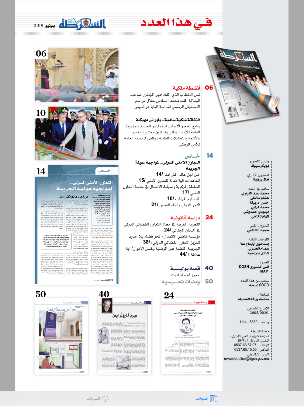 Des rubriques variées et riches composent chaque numéro, des activités Royales, un dossier spécial décryptant un métier de la Police, des événements marquant l’actualité de la Sûreté Nationale, un sujet d’ordre juridique ou scientifique, une nouvelle noire inspirée d’affaires réelles, des portraits ainsi que des interviews.