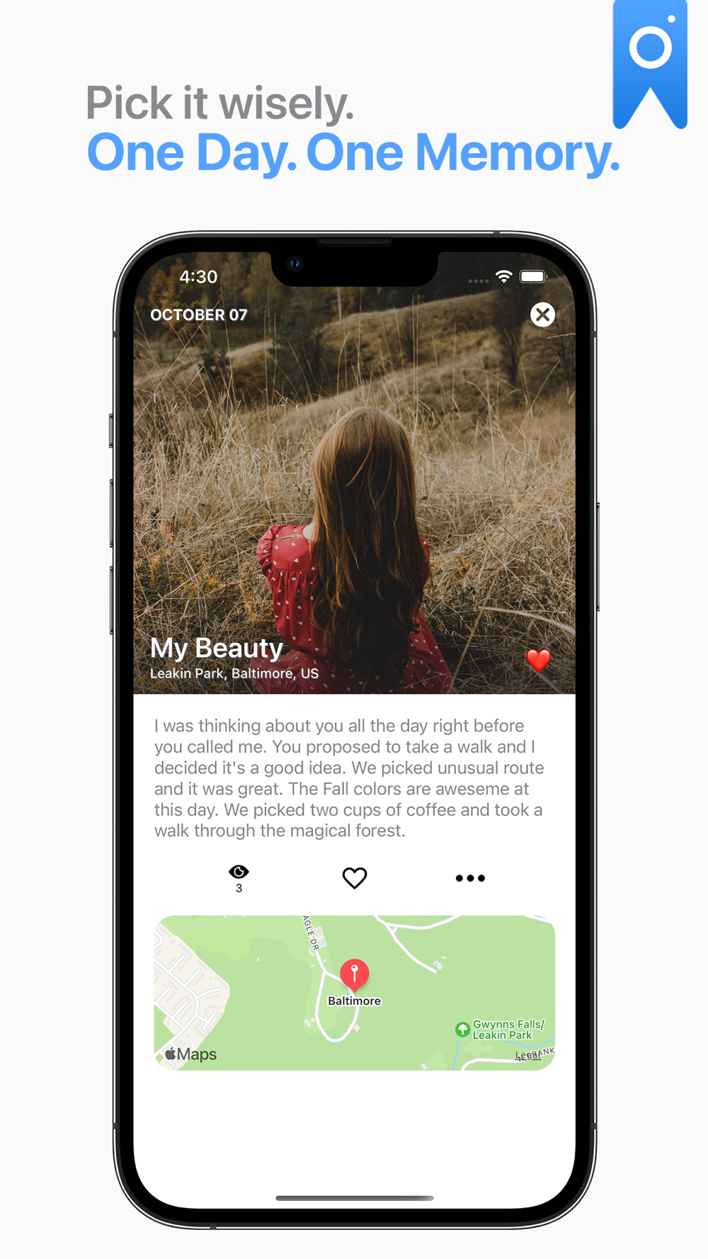 Take a picture of the most exciting moment of the day, add best description, specify your daily mood and even add the location of the place where photo were taken.