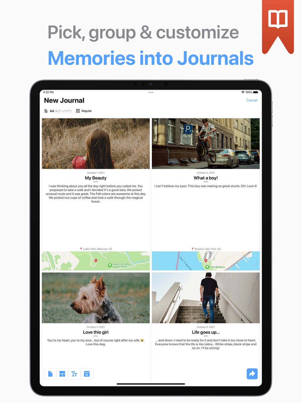 Make your own Journal of the picked Memories.