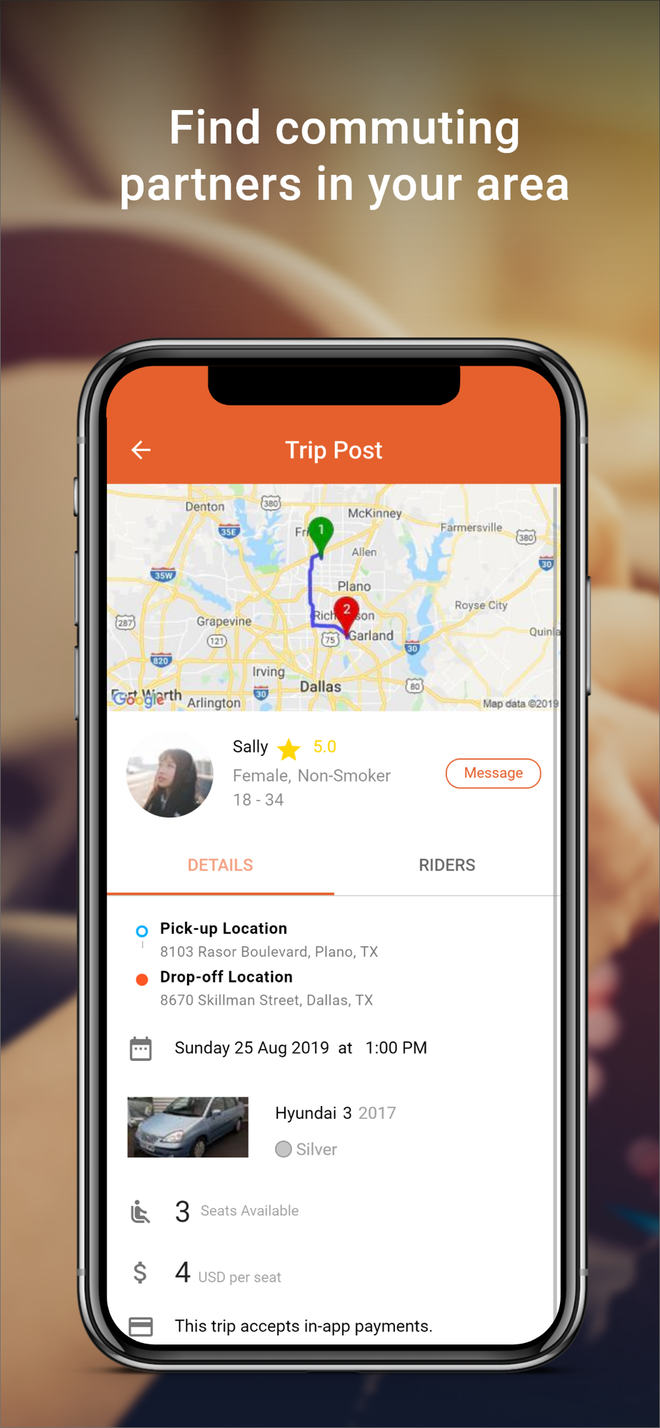 Choose to commute with others from your workplace or campus, or those who are simply travelling on the same route as you.