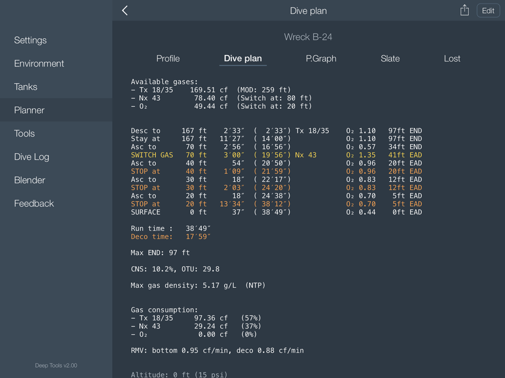 Deep Tools is a must have application for recreational and technical divers.