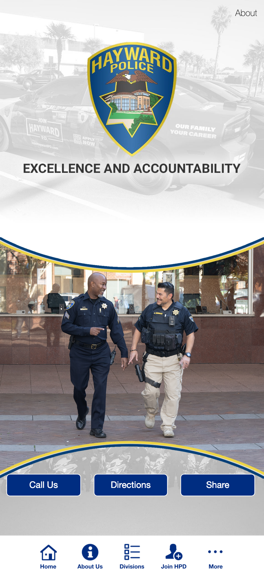 Welcome to the Hayward Police Department Mobile App. I hope that you find the information we have provided to be useful and easy to locate. The purpose of this App is to help the Hayward Police Department collaborate with its community to prevent crime, promote safety and enhance the quality of life.
