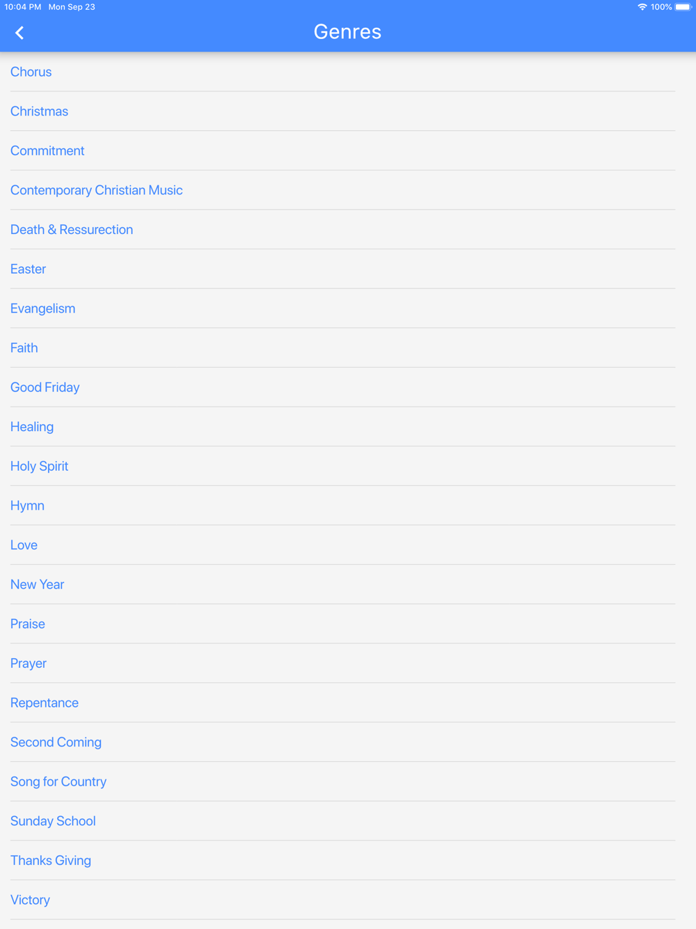 A sleek user interface with song lyrics categorized based on Albums, Composers, and Genres. Create playlists to group your songs to be sung at a cell meeting or church services. Use the extremely fast search to find songs and share the songs lyrics.
