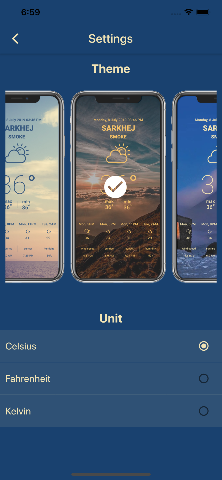 - Celsius, Fahrenheit and Kelvin temperature unit.